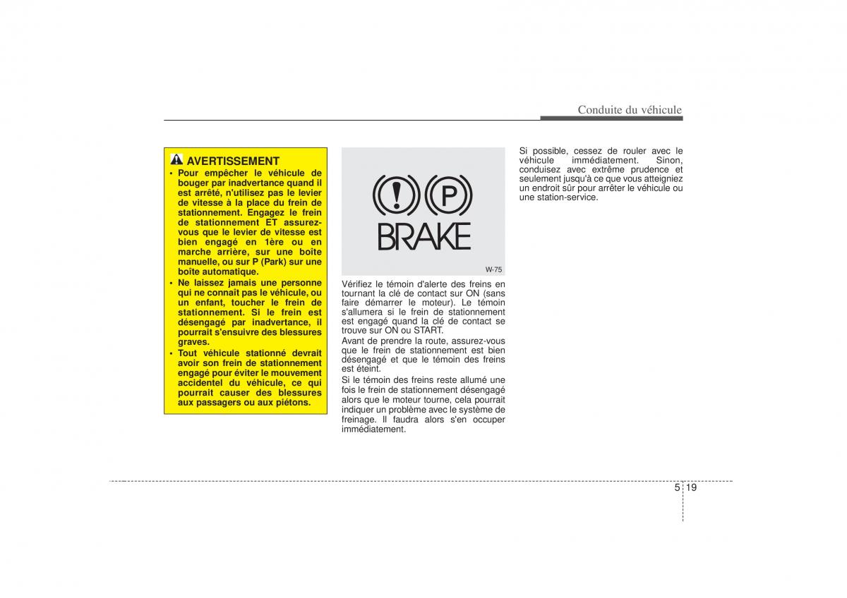 pourrait causer des blessures fois le frein de stationnement désengagé