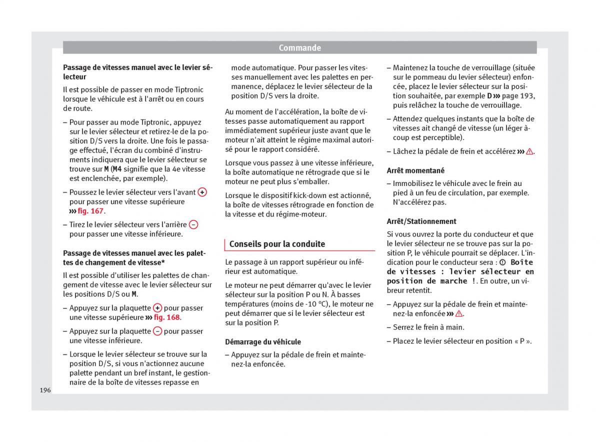 Conseils pour la conduite le levier sélecteur ne se trouve pas sur la po-