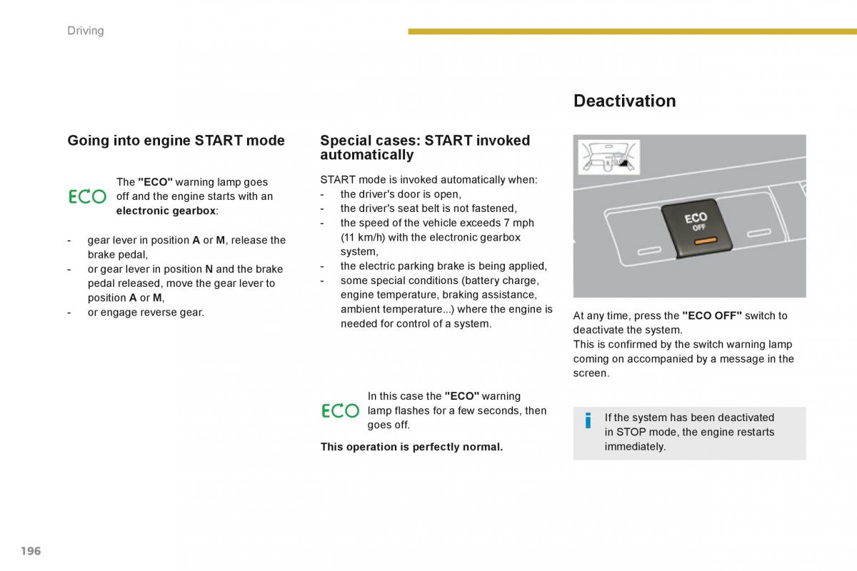 The " ECO" warning lamp goes START mode is invoked automatically when: