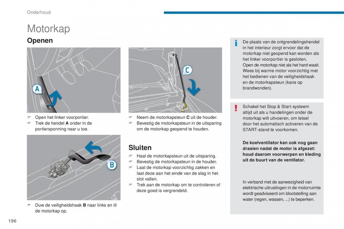 F Open het linker voorportier.F Neem de motorkapsteun C uit de houder.motorkap wilt uitvoeren, om letsel