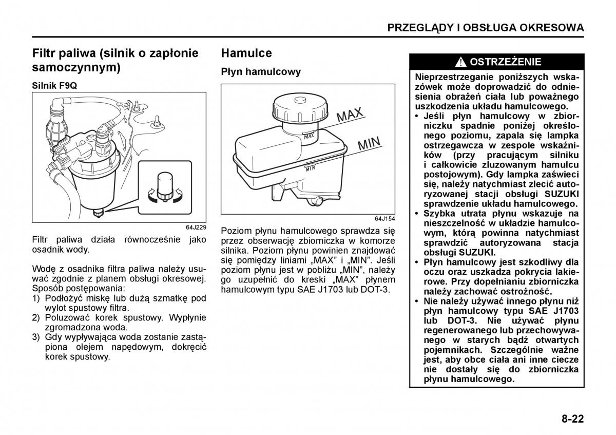 WodĊ z osadnika filtra paliwa nalĪey usu-poziom płynu jest w pobĪliu „MIN”, naleĪy Płyn hamulcowy jest szkodliwy dla
