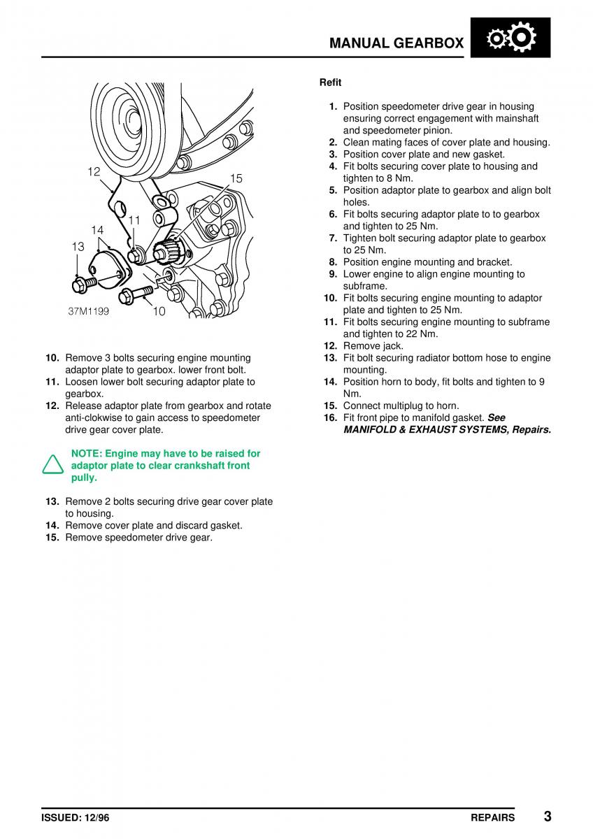 10. Remove3boltssecuringenginemounting13. Fit bolt securing radiator bottom hose to engine
