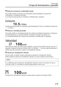 segundos. Después de oprimir el botón INFO, se exhibirá - - - km/h por aproximadamente 1