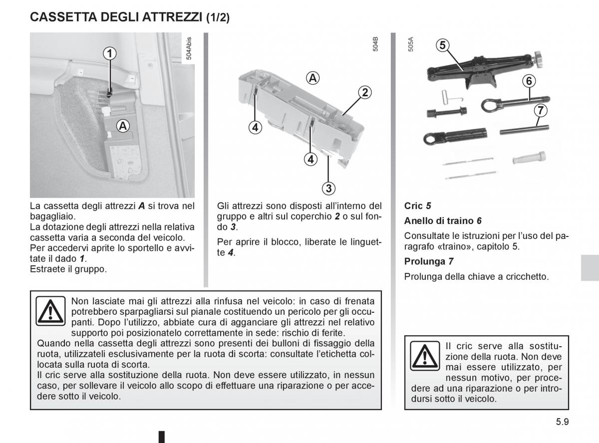 La cassetta degli attrezzi A si trova nel Gli attrezzi sono disposti all’interno del Cric 5