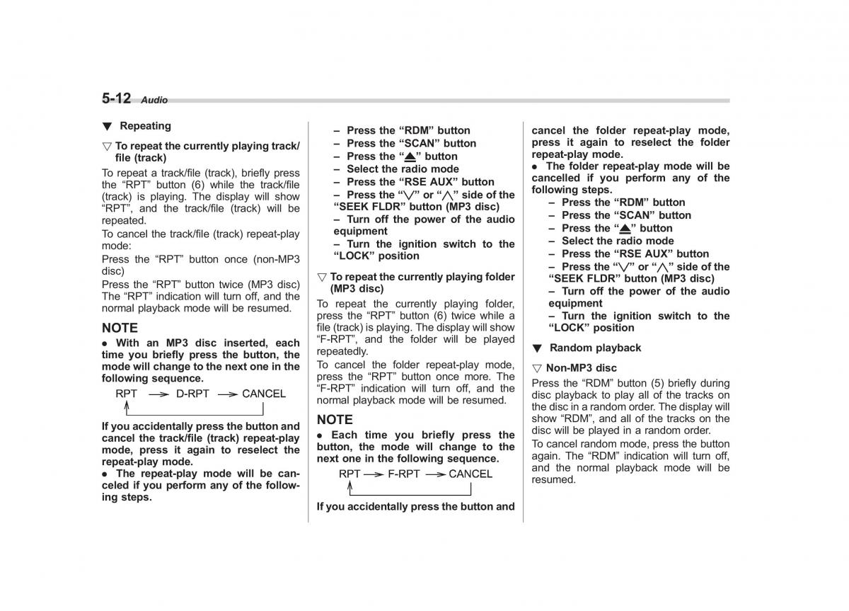 ! Repeating – Press the “RDM” buttoncancel the folder repeat-play mode,