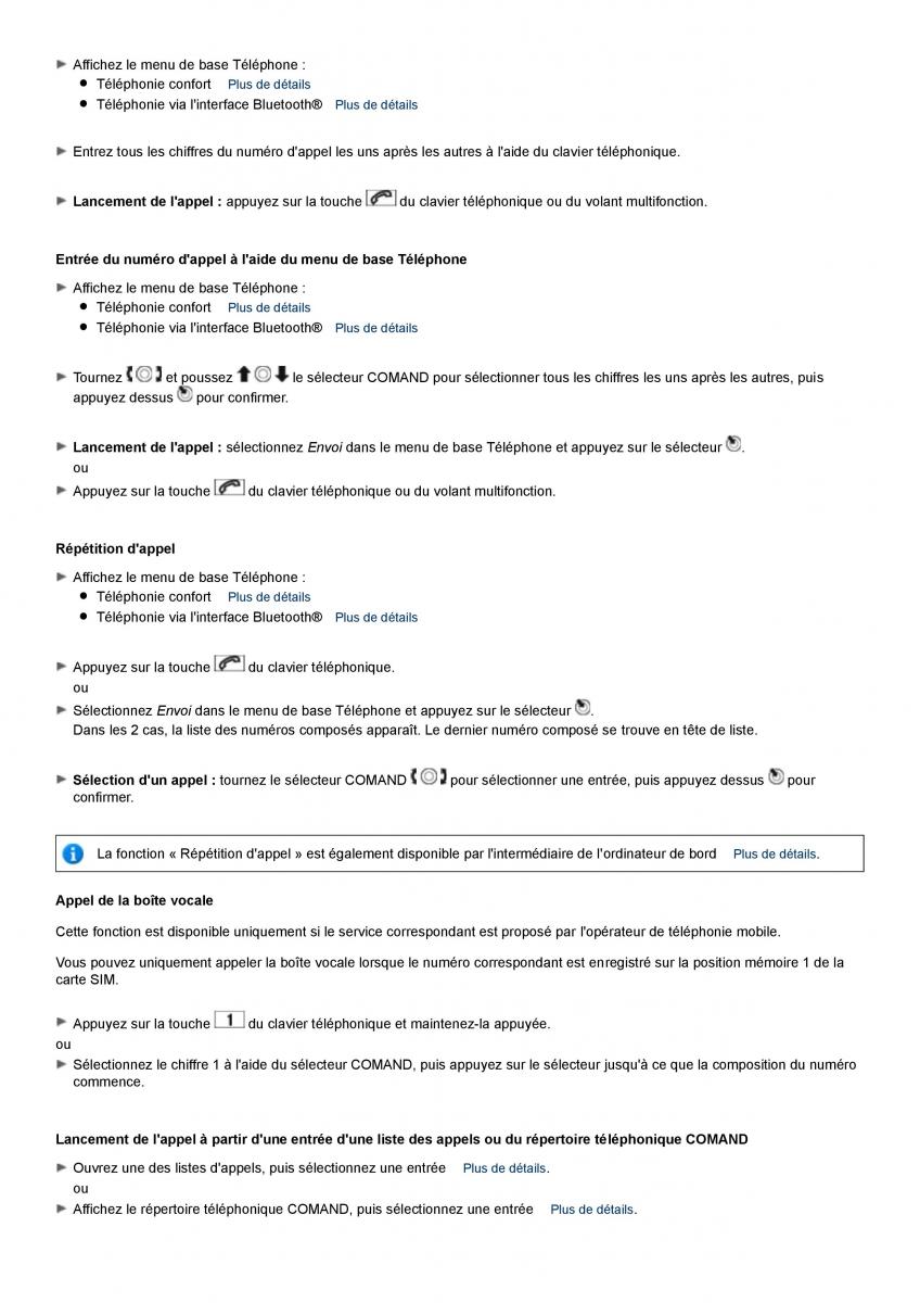 Téléphonie via l'interface Bluetooth®Plus de détails