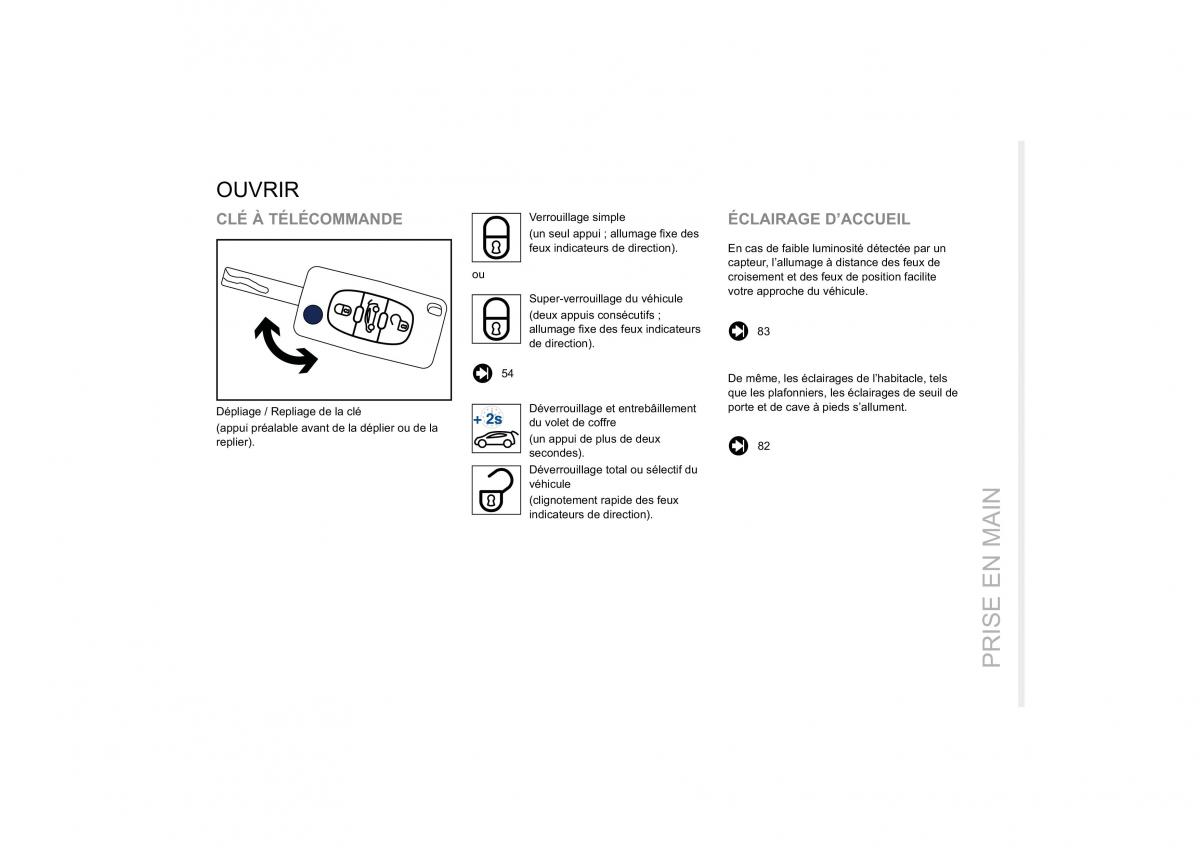 CLÉ À TÉLÉCOMMANDE V errouillage simple ÉCLAIRAGE D’ACCUEIL