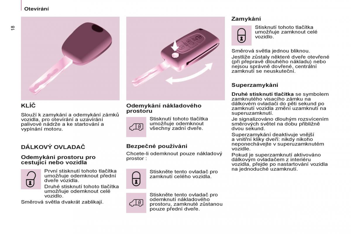 palivové nádrže a ke startování a umožňuje odemknout směrových světel na dobu přibližně