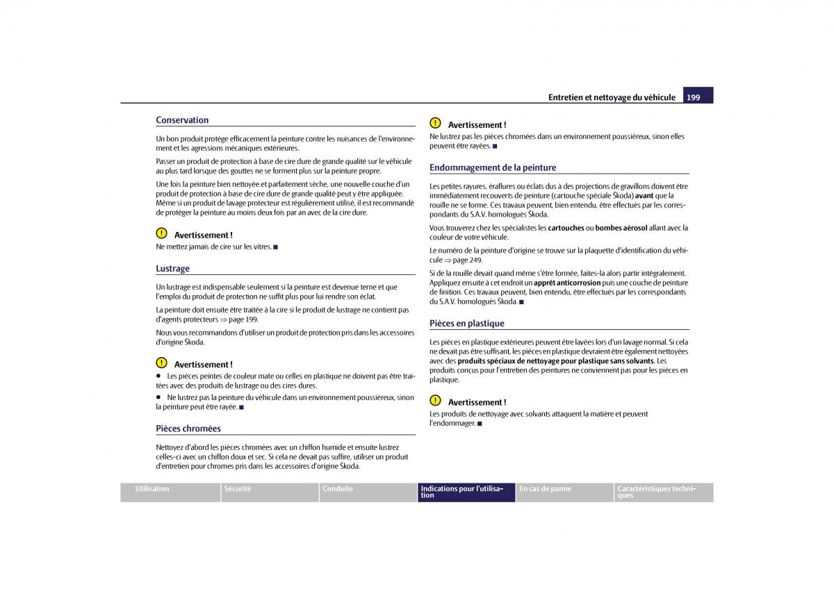 de protéger la peinture au moins deux fois par an avec de la cire dure.pondants du S.A.V. homologués Škoda.