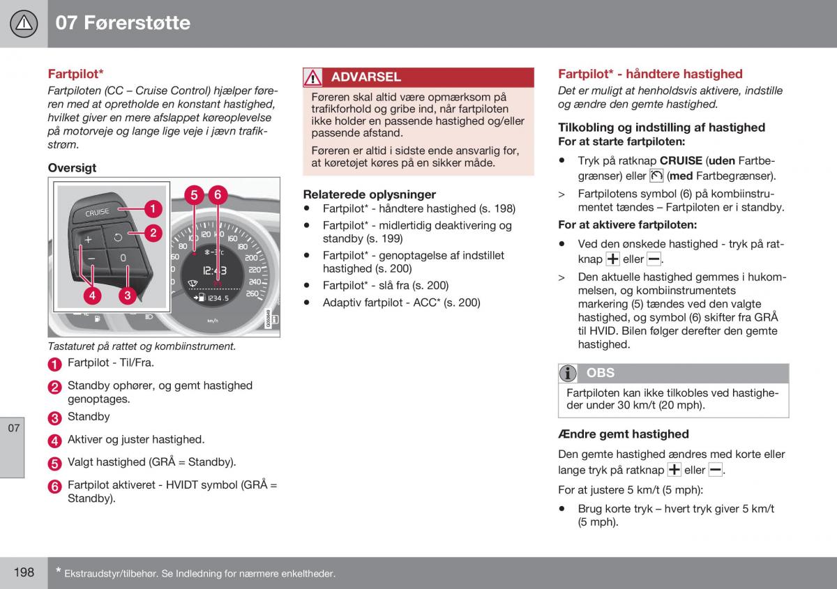 Fartpilot* - håndtere hastighed (s. 198)mentet tændes – Fartpiloten er i standby.