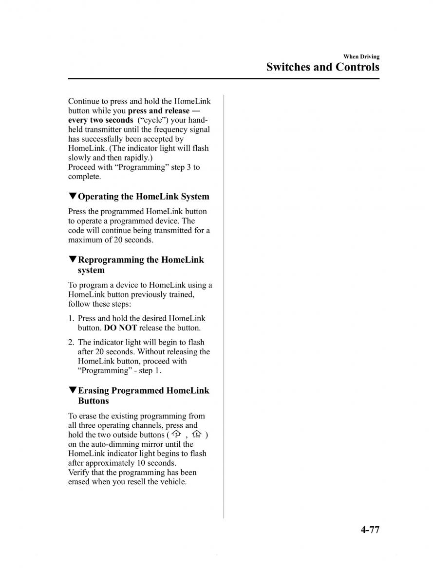 qOperatingtheHomeLinkSystem