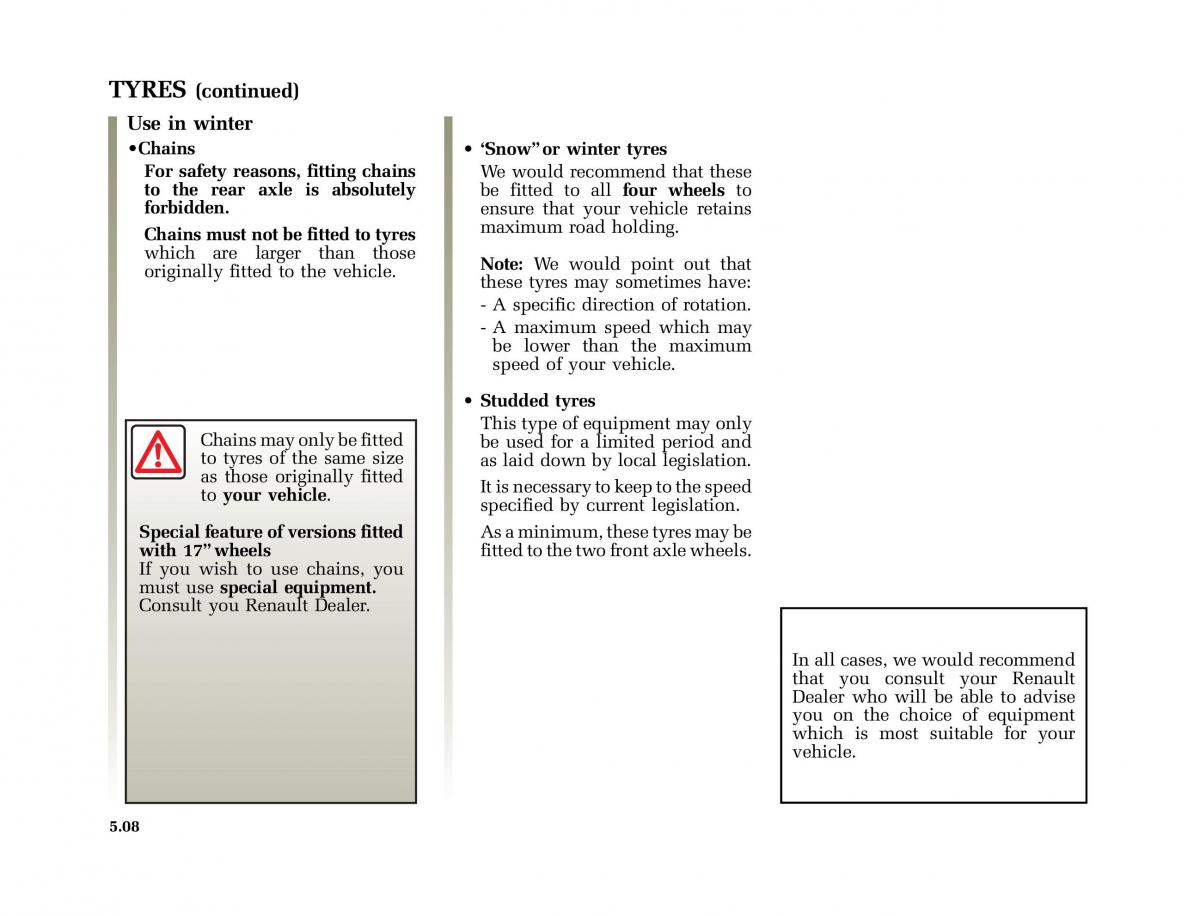 Chains must not be fitted to tyresmaximum road holding.
