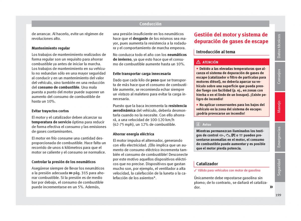 bar por debajo, el consumo de combustible plomo; de lo contrario, se dañará el cataliza-