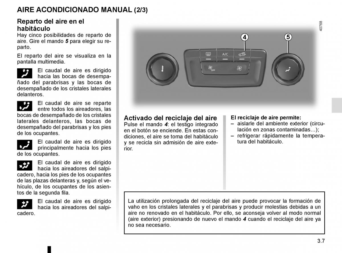 cadero. aire no renovado en el habitáculo. Por ello, se aconseja volver al modo normal