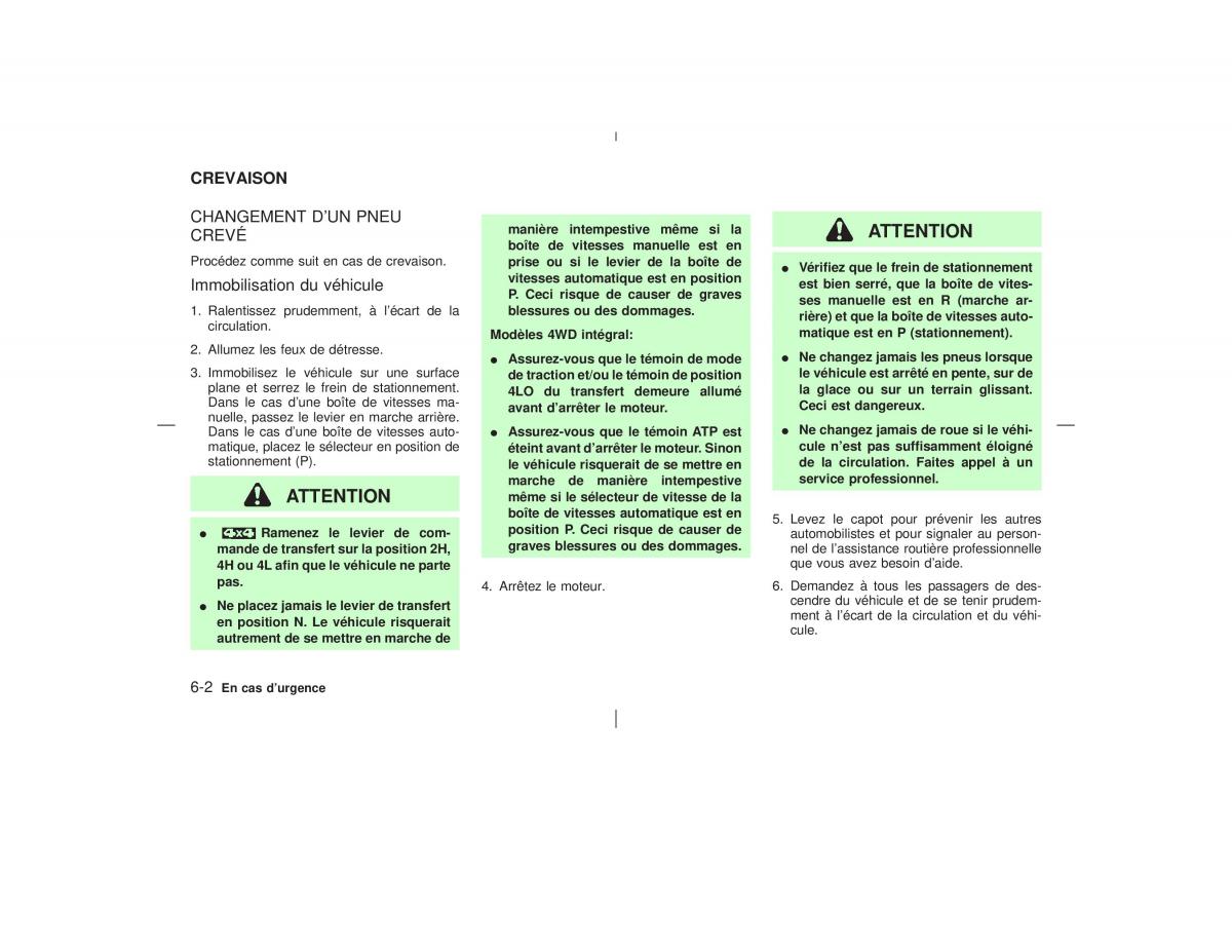 2. Allumez les feux de de´tresse.I Assurez-vous que le te´moin de modeI Nechangezjamaislespneuslorsque