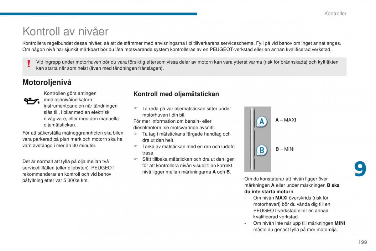 servicetillfällen (eller oljebyten). PEUGEOT för att kontrollera nivån visuellt: en korrekt