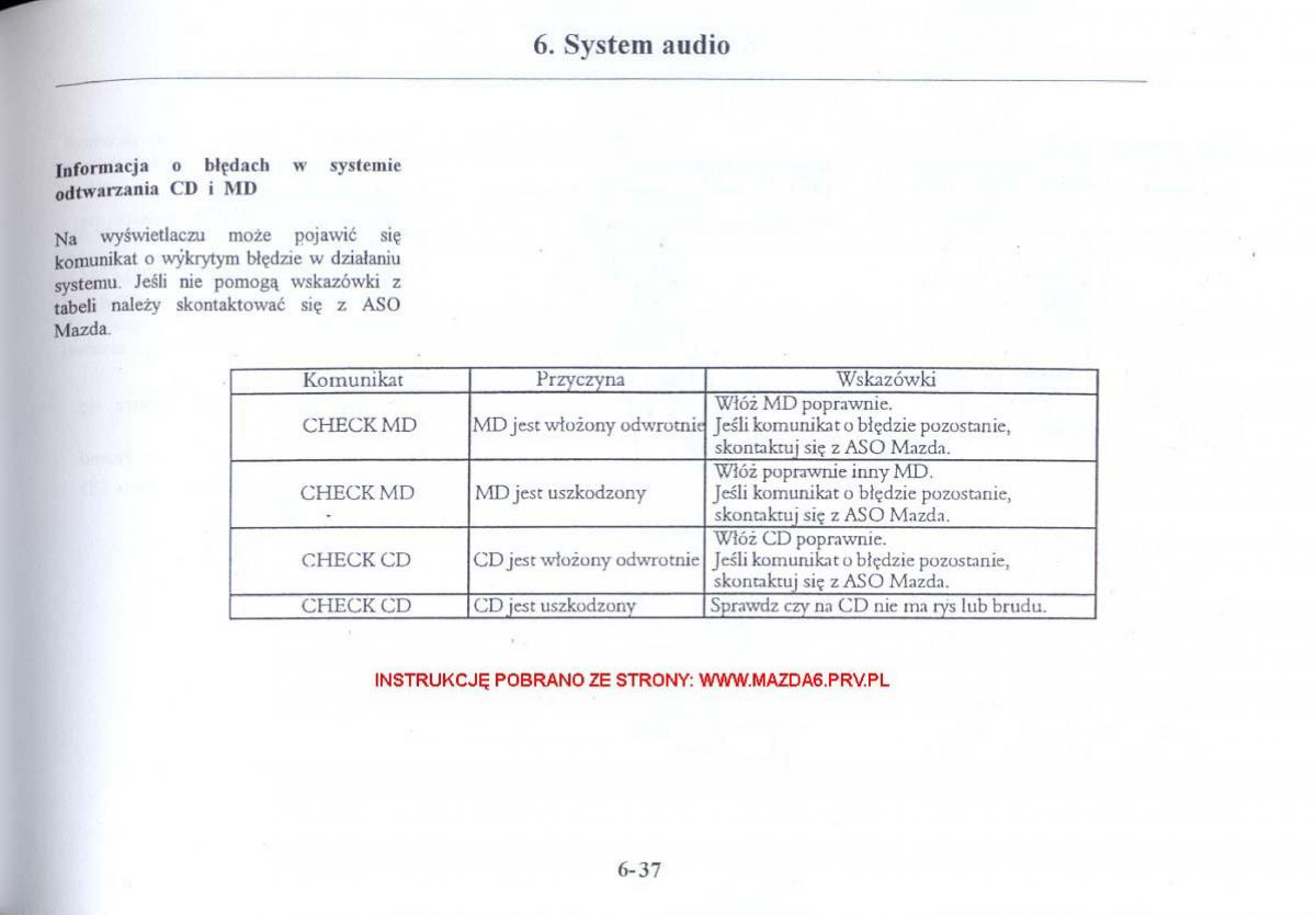 owners manual Mazda 6 - year of production: 2002, 2003, 2004, 2005, 2006, 2007 - Mazda 6 I instrukcja obslugi PL