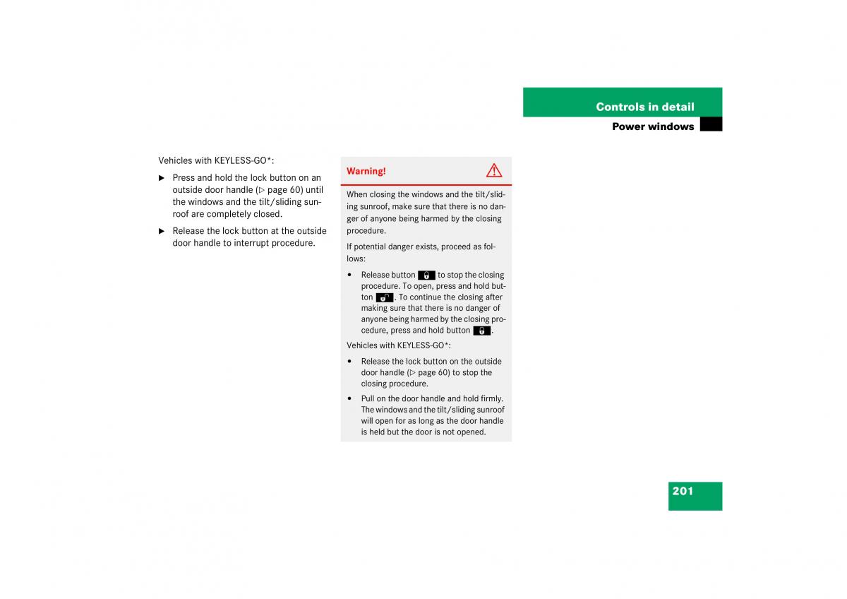 outside door handle ( page 60) until When closing the windows and the tilt/slid-