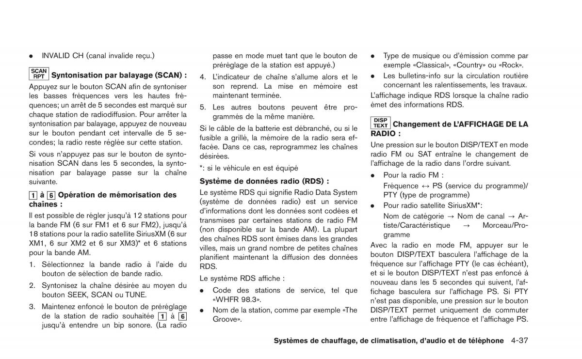 . INVALID CH (canal invalide rec¸u.)passe en mode muet tant que le bouton de.Type de musique ou d’emission comme par