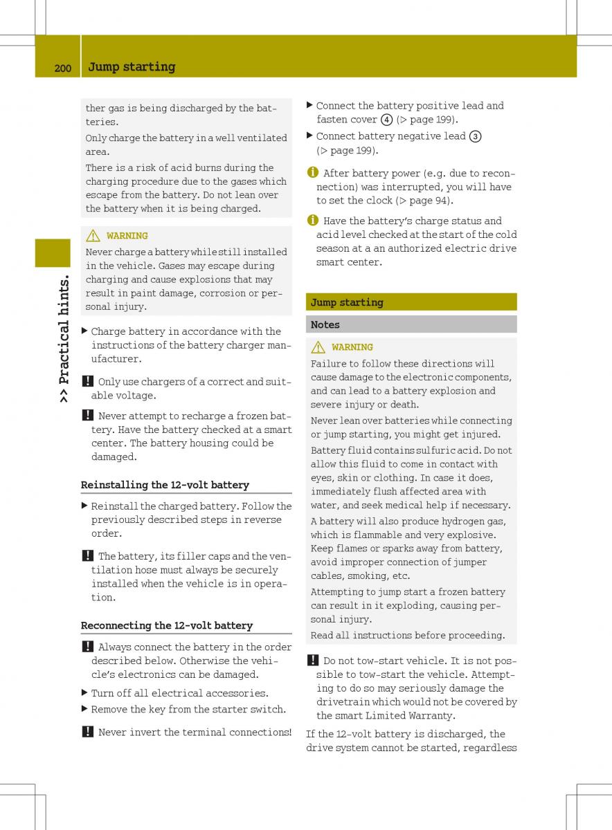 from owners manual to the vehicle Smart Fortwo, year of production 2008: