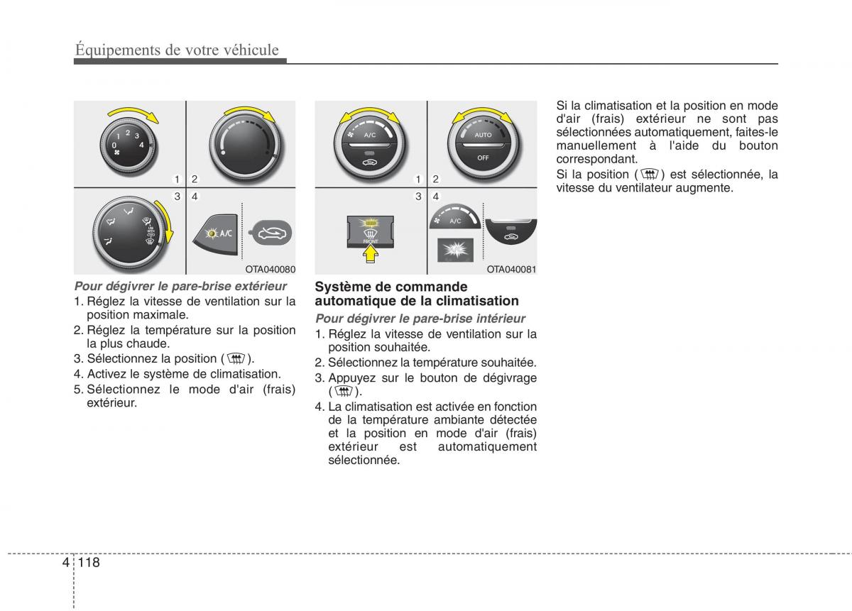 4. Activez le système de climatisation. 3.Appuyez sur le bouton de dégivrage