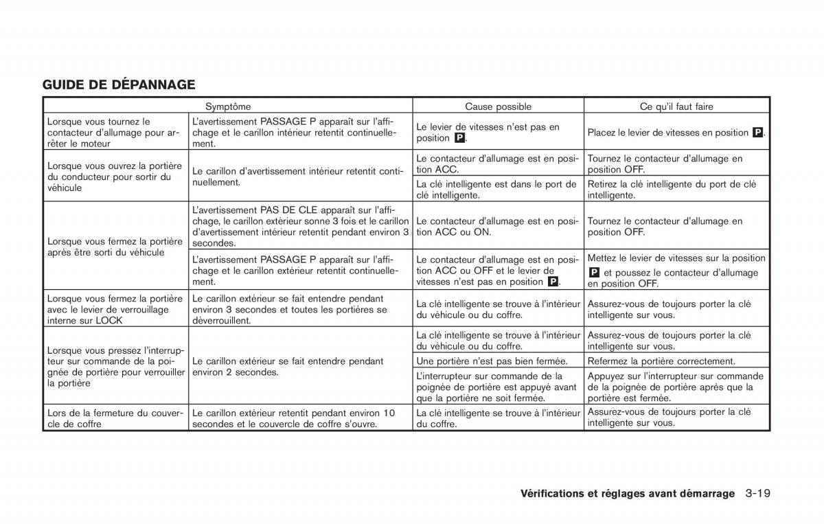 chage et le carillon exterieur retentit continuelle-tion ACC ou OFF et le levier deP