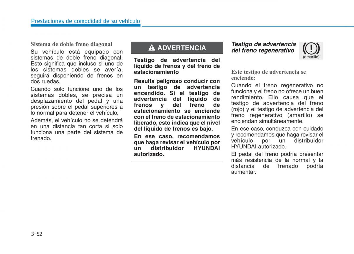 Sistema de doble freno diagonal ADVERTENCIA Testigo de advertencia