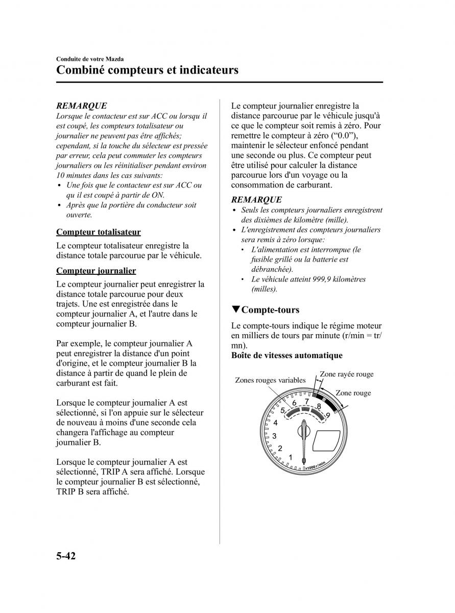 compteur journalier B. Lecompte-tours indique le régime moteur