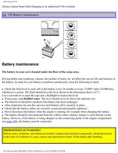 ● Check the fluid level in each cell in the battery every 24 months or every 15,000* miles (24,000 km),