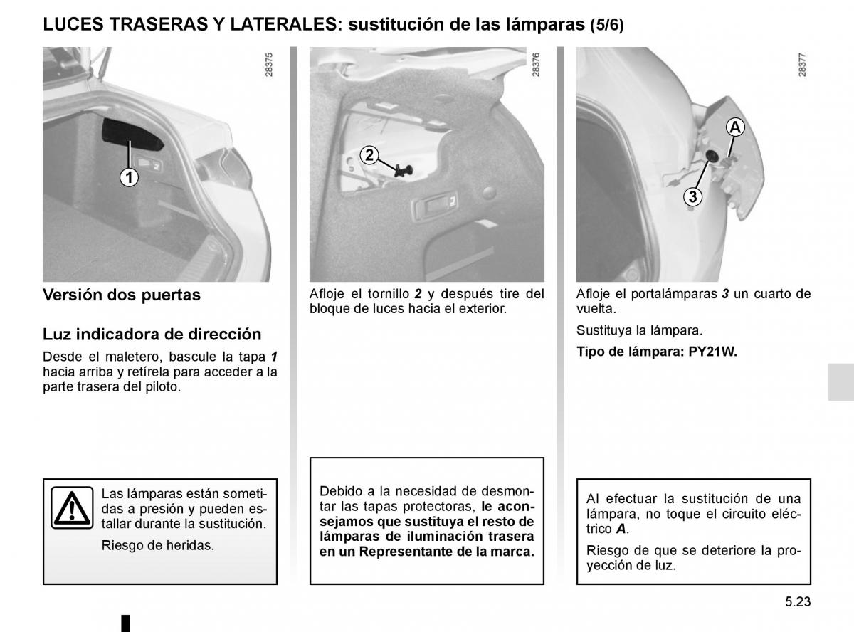 LUCES TRASERAS Y LATERALES: sustitución de las lámparas (5/6)