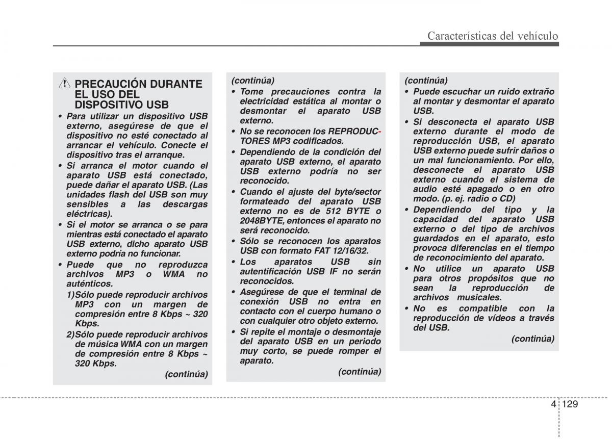 arrancar el vehículo. Conecte elTORES MP3 codificados.reproducción USB, el aparato