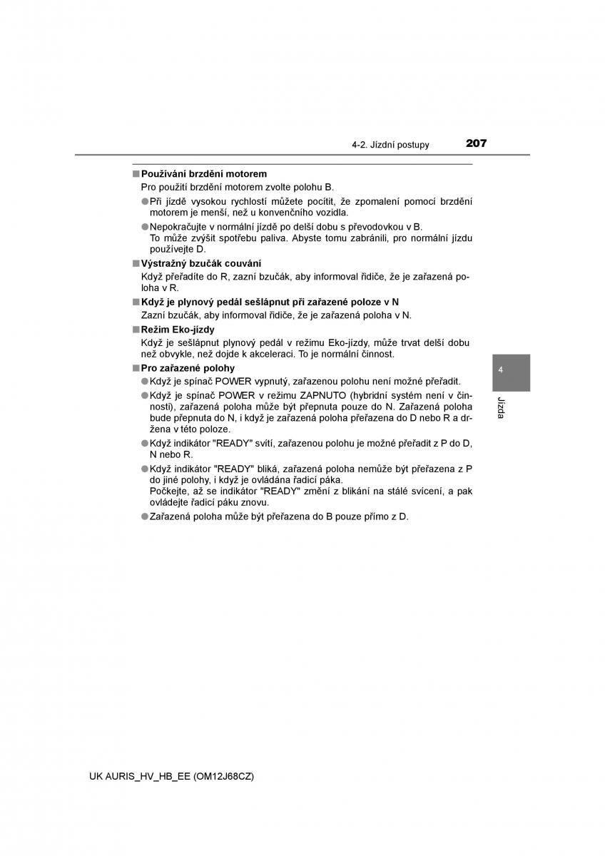 owners manual Toyota Auris Hybrid - year of production: 2013 - Toyota Auris Hybrid II 2 navod k obsludze CZ