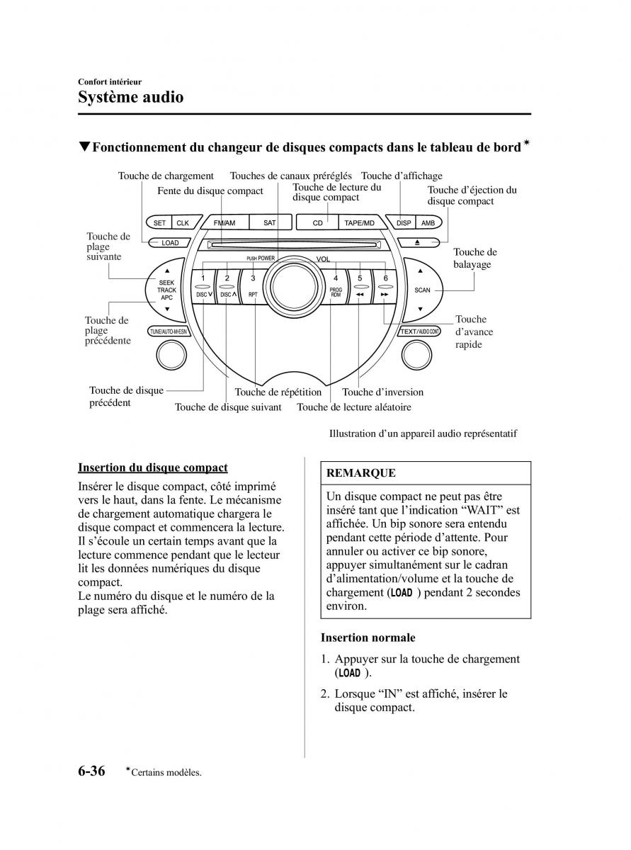 Insertion du disque compact REMARQUE