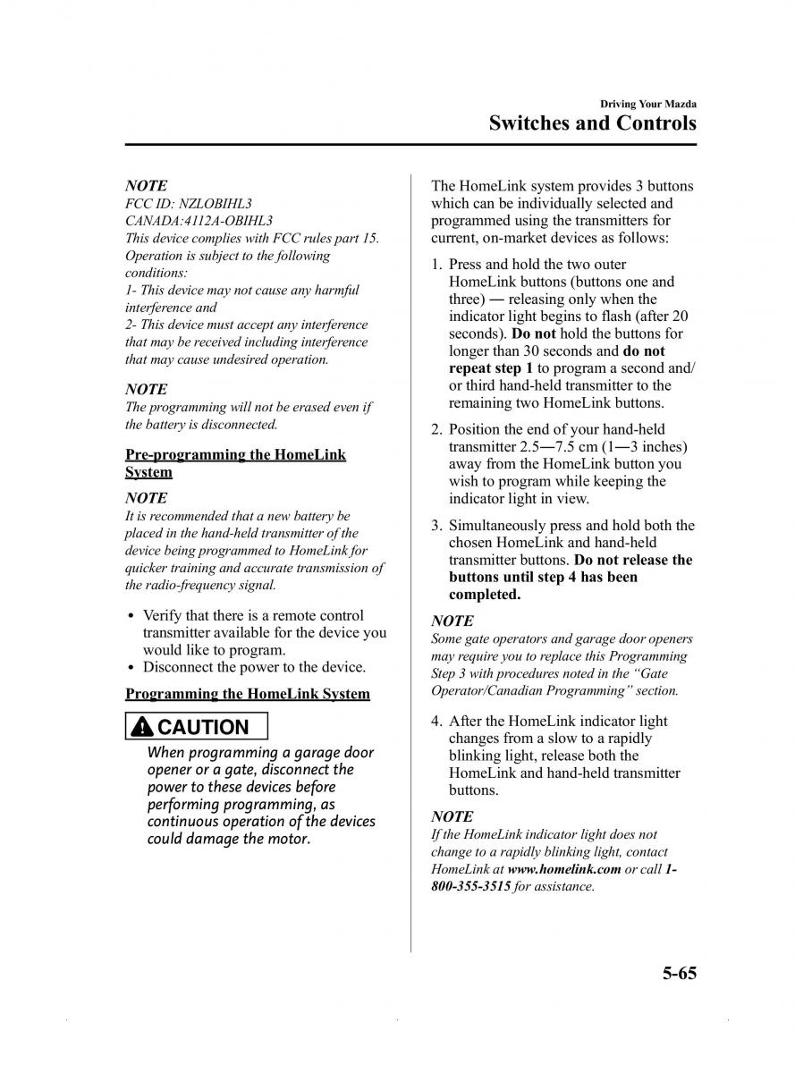 ProgrammingtheHomeLinkSystem Operator/Canadian Programming” section.