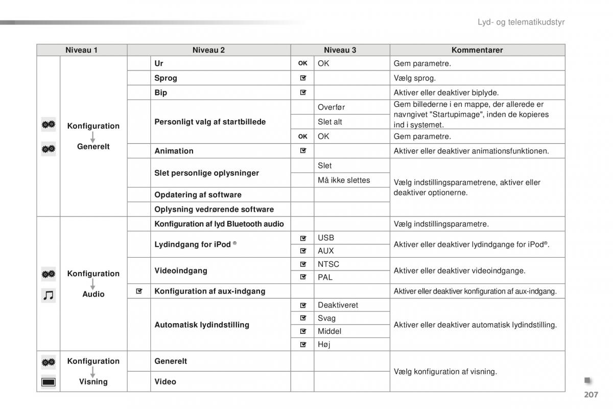 Audio Konfiguration af aux-indgang Aktiver eller deaktiver konfiguration af aux-indgang.