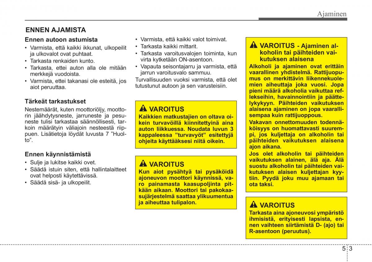 Tarkasta, ettei auton alla ole mitään Vapauta seisontajarru ja varmista, ettäAlkoholi ja ajaminen ovat erittäin