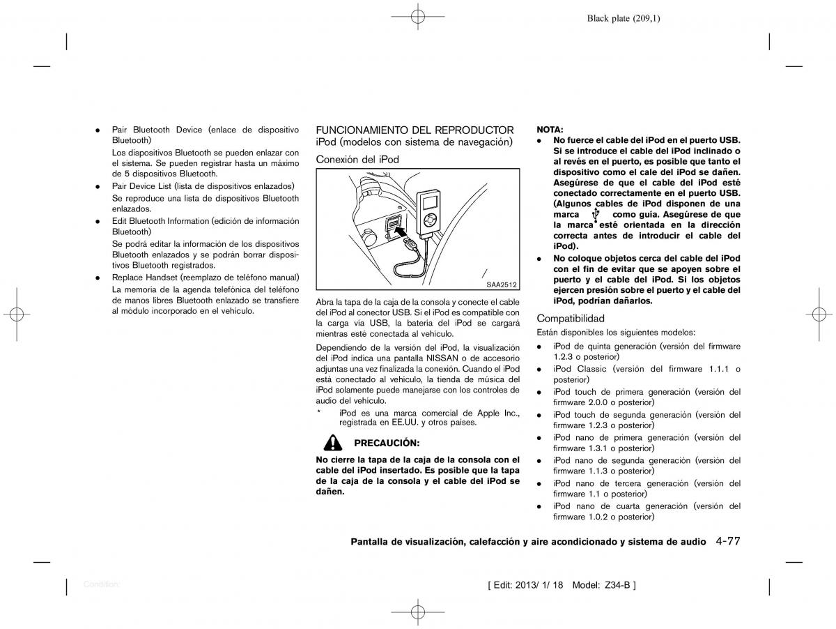 Bluetooth enlazados y se podran borrar disposi- . Nocoloqueobjetos cerca del cable del iPod