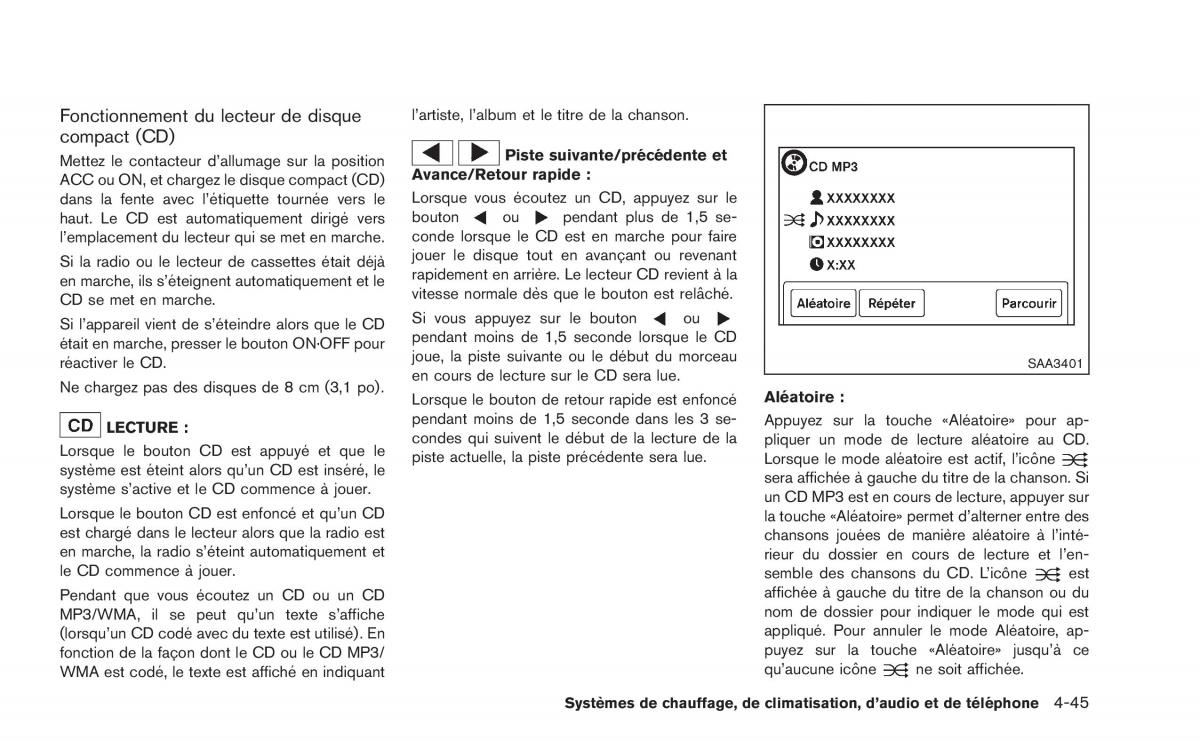 fonction de la fac¸on dont le CD ou le CD MP3/ puyez sur la touche «Aleatoire» jusqu’a ce