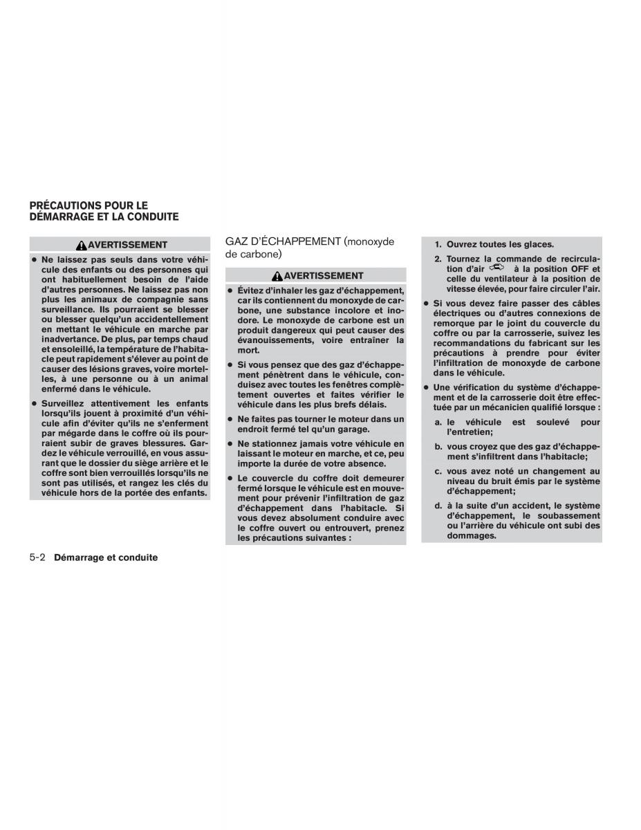 AVERTISSEMENT GAZD’ÉCHAPPEMENT(monoxyde 1. Ouvrez toutes les glaces.