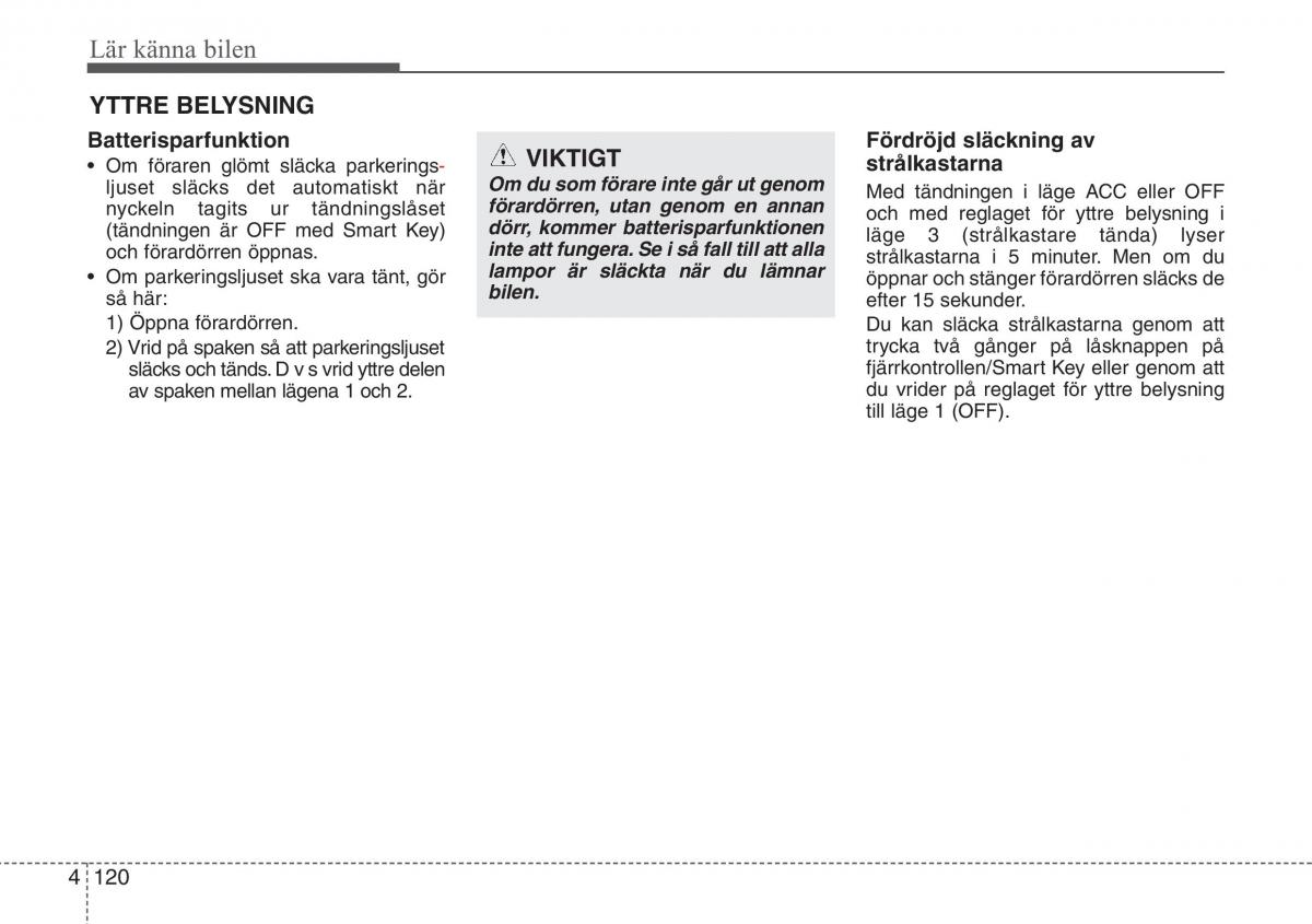 • Om parkeringsljuset ska vara tänt, görlampor är släckta när du lämnar