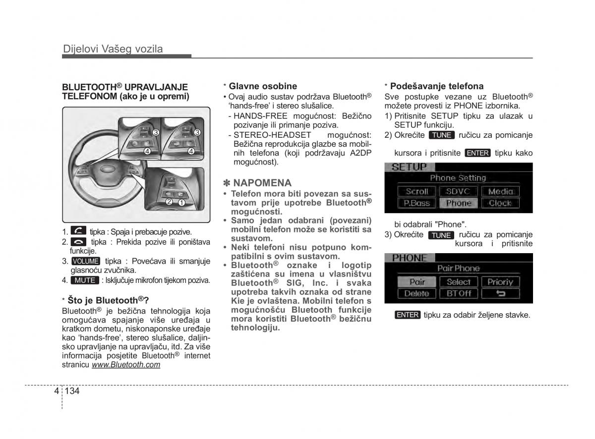BLUETOOTH ®UPRAVLJANJE * Glavne osobine * Podešavanje telefona