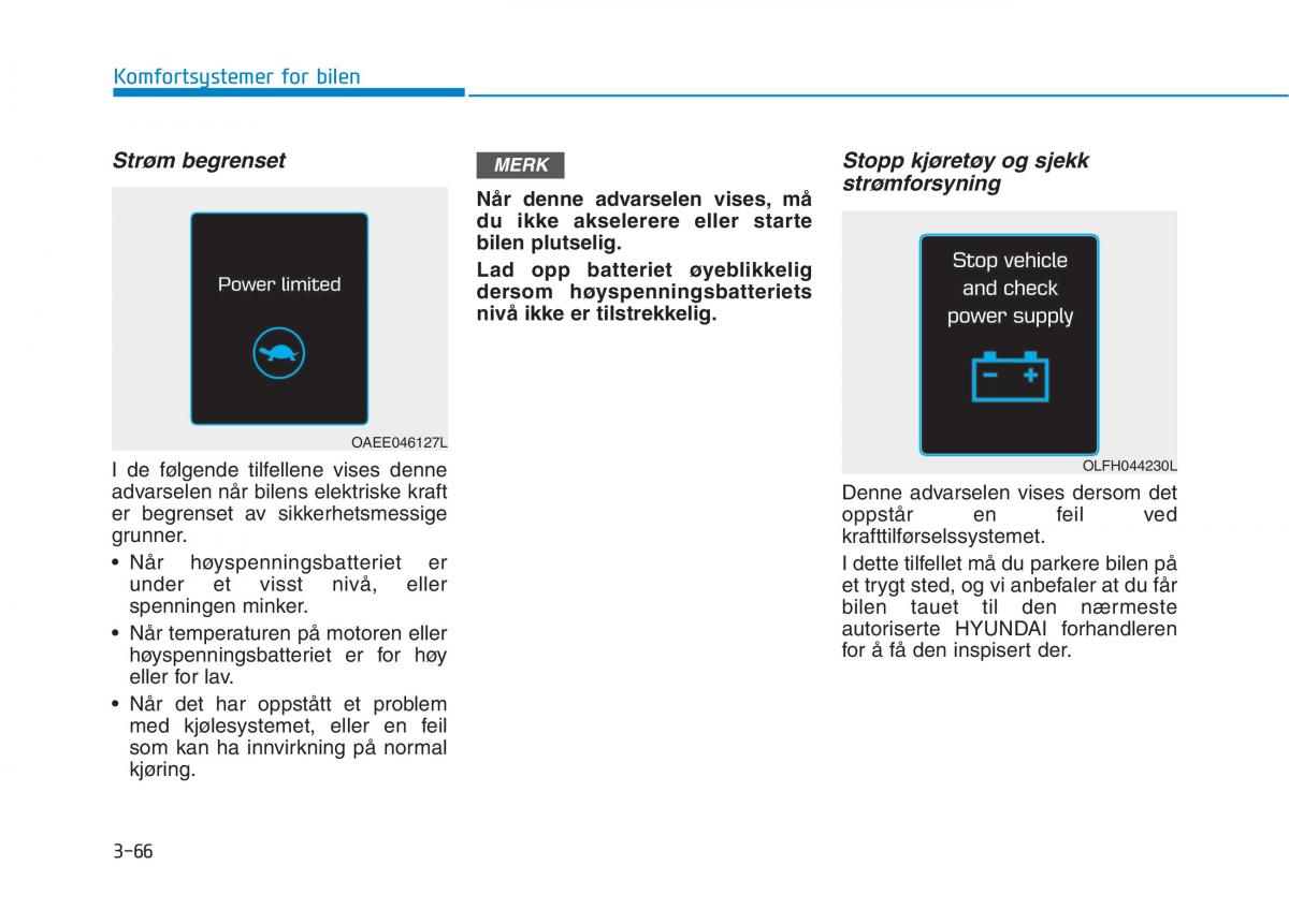 Strøm begrenset MERK Stopp kjøretøy og sjekk