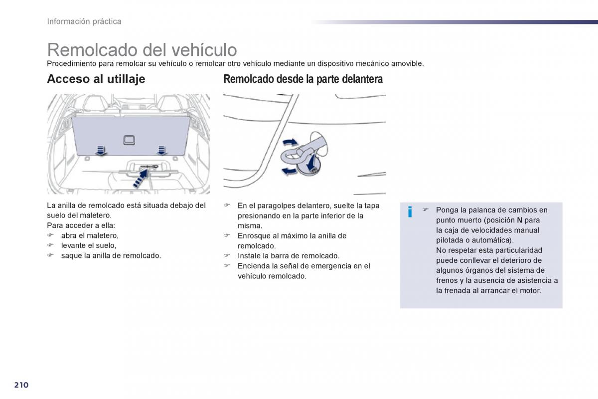 La anilla de remolcado está situada debajo del En el paragolpes delantero, suelte la tapa Ponga la palanca de cambios en