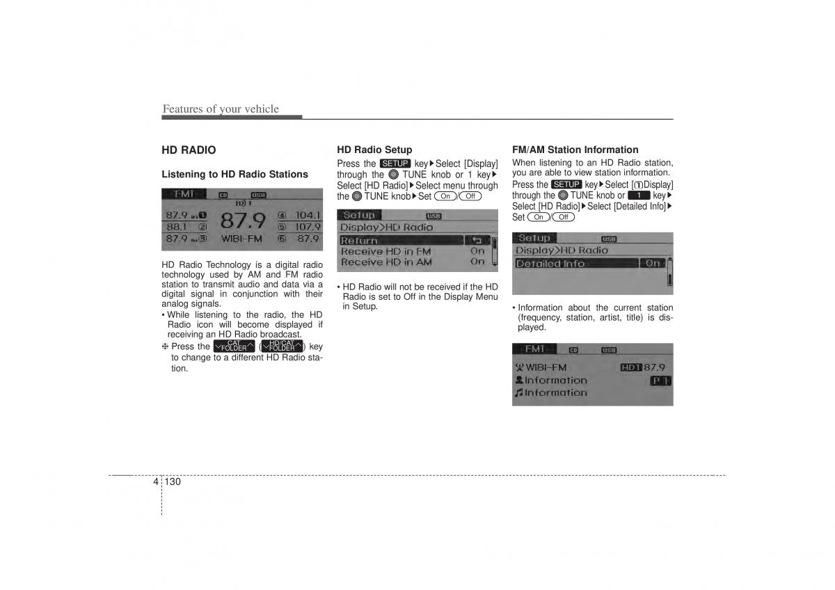 • While listening to the radio, the HD (frequency, station, artist, title) is dis-