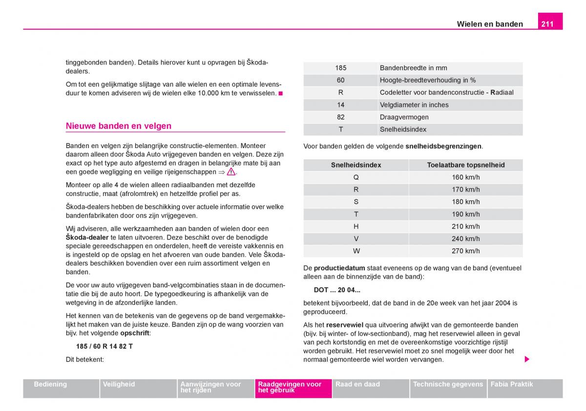 tinggebonden banden). Details hierover kunt u opvragen bij Škoda-185Bandenbreedte in mm