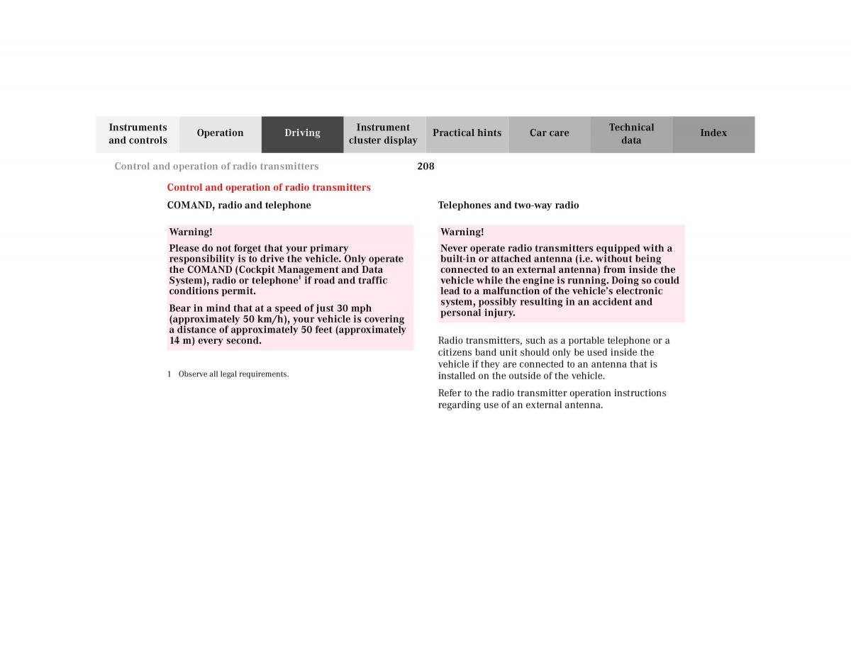 COMAND, radio and telephone Telephones and two-way radio