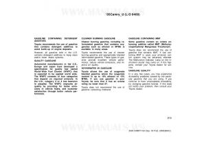 owners manual Toyota Camry - year of production: 2001, 2002, 2003, 2004, 2005, 2006 - Toyota Camry VI 6 owners manual EN