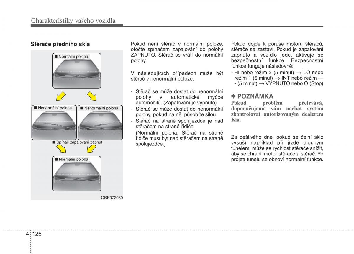 ■Normální poloha ZAPNUTO. Stěrač se vrátí do normálnízapnuto a vozidlo jede, aktivuje se