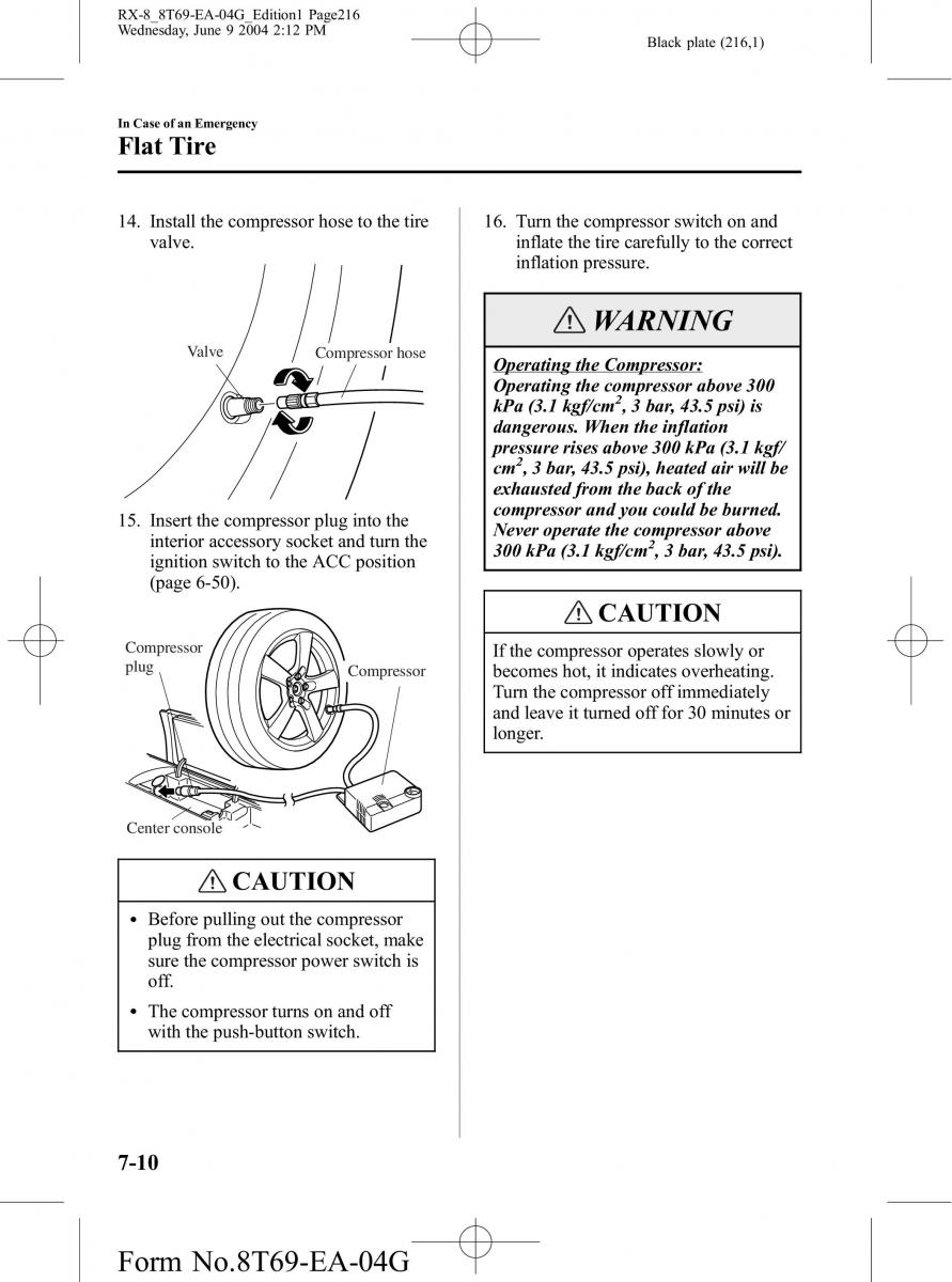 14. Install the compressor hose to the tire 16. Turn the compressor switch on and