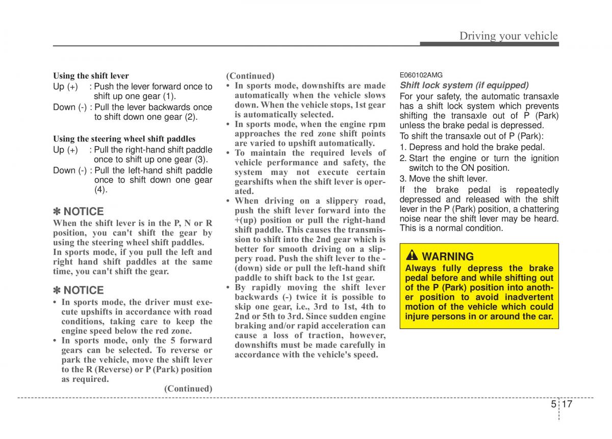 to shift down one gear (2). shifting the transaxle out of P (Park)